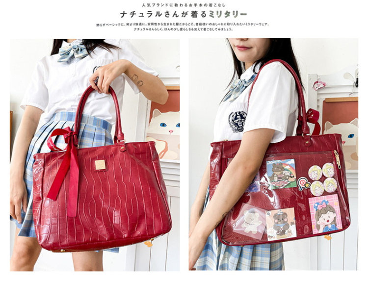 中学生 痛バッグ ショルダー トート A4 痛バ ショルダーバッグ 赤 透明
