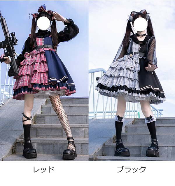 ロリータ ワンピース ゴスロリ 可愛い ワンピース 続々登場 S M L ブラック レッド