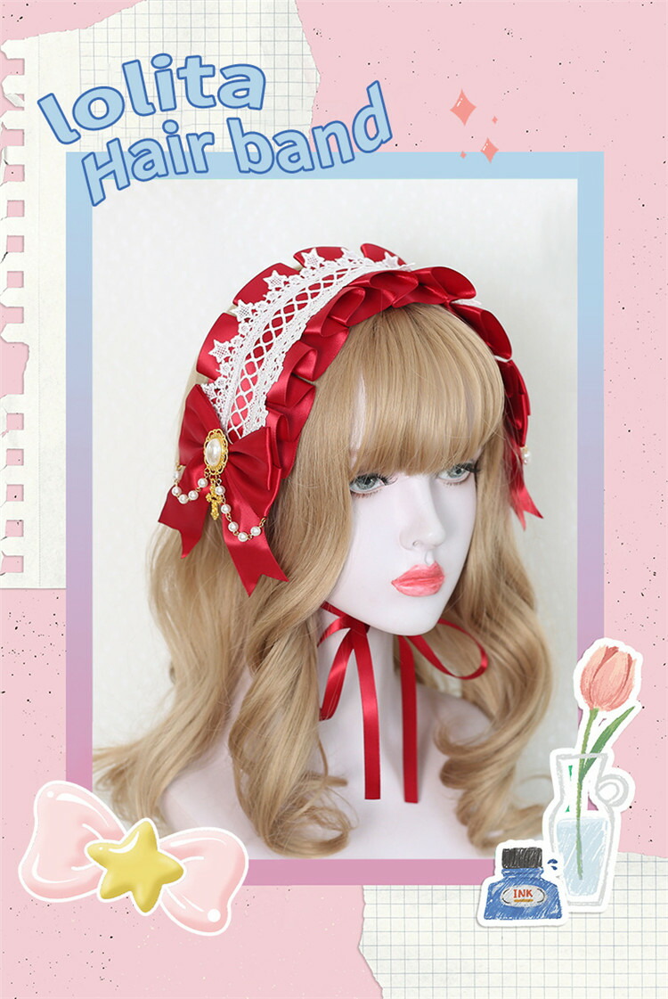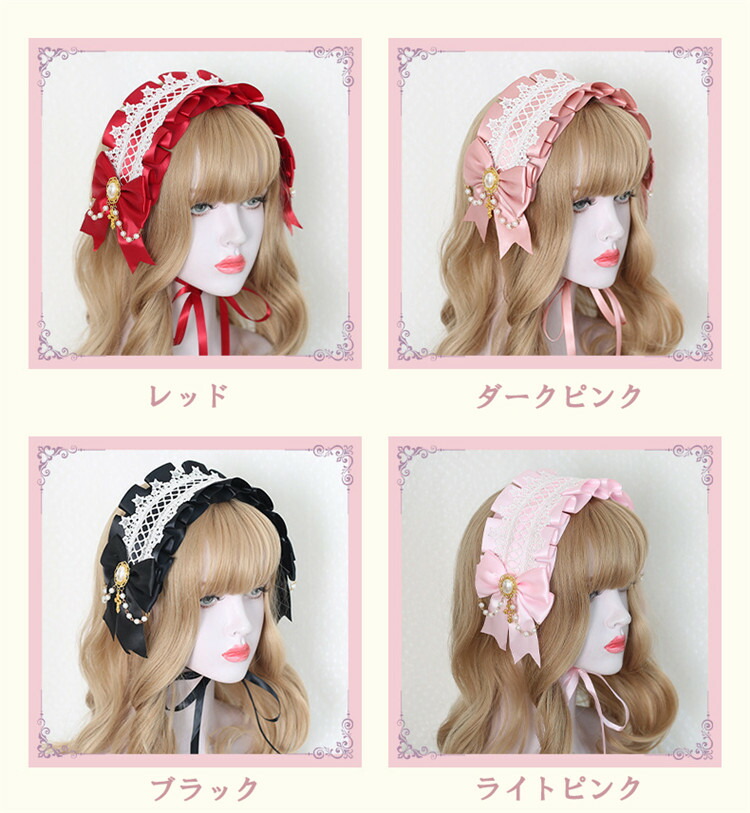 ロリータ ヘッドドレス レディース ゴ ジュエリー アクセサリー 続々登場 レッド ブラック ダークピンク ライトピンク グレー ブルー グリーン ネイビー