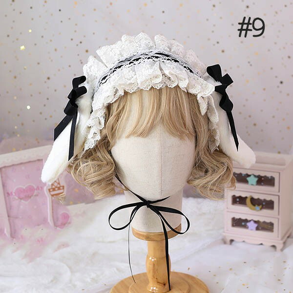 うさ耳 カチューシャ ヘッドドレス コスプレ小道具 ロリータ ロリィタ フリル レース ウサミミ ケモノ耳 ケモ耳 ピンク ブラック ふさふさ モコモコ かわいい 学園祭 パーティー アニマル 文化祭