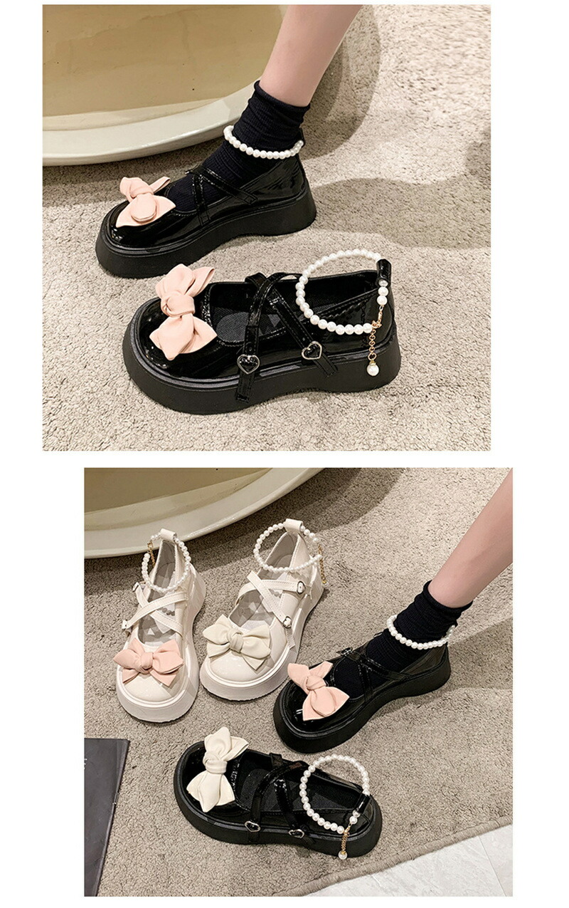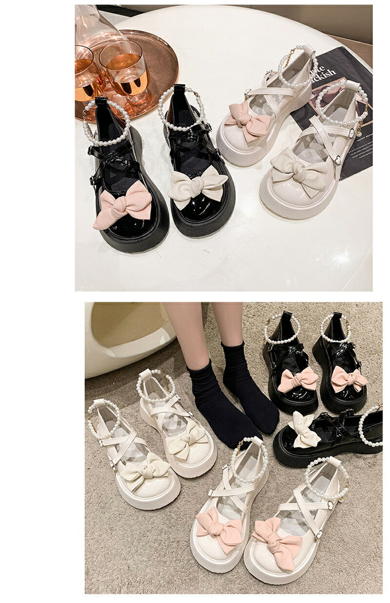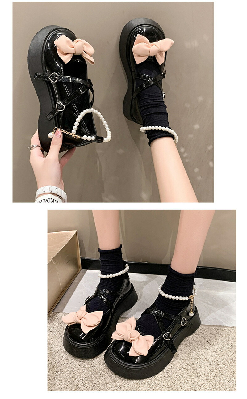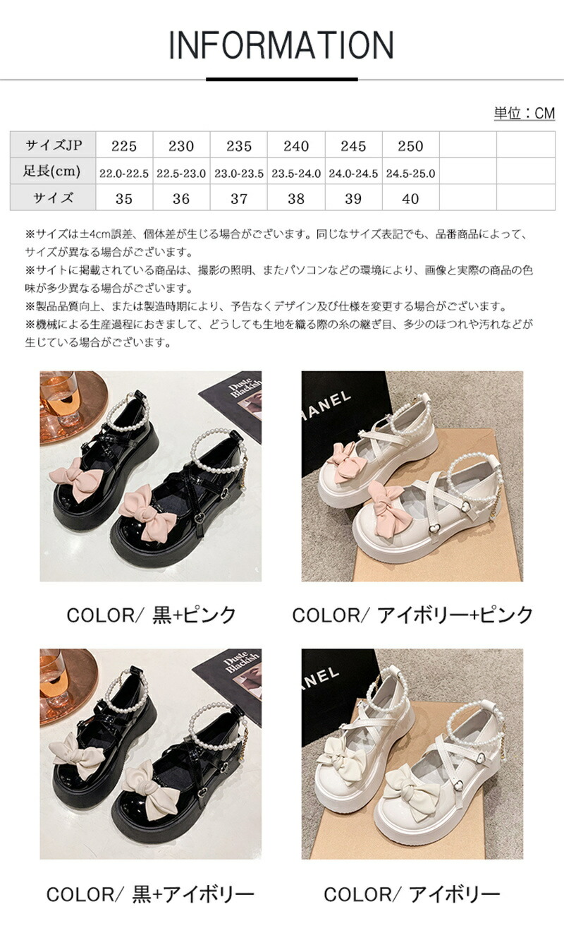 厚底ヒール ローファー ロリータシュー 靴 豊富な品揃え 35(22.5cm) 36(23cm) 37(23.5cm) 38(24cm) 39(24.5cm) 40(25cm) ブラック+ピンク アイボリー+ピンク ブラック+アイボリー アイボリー