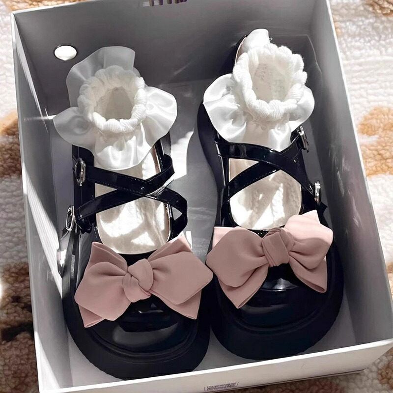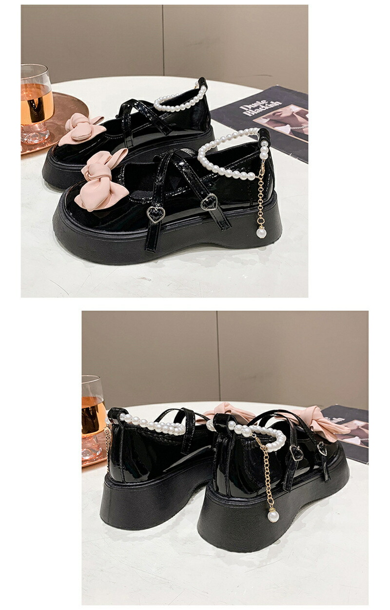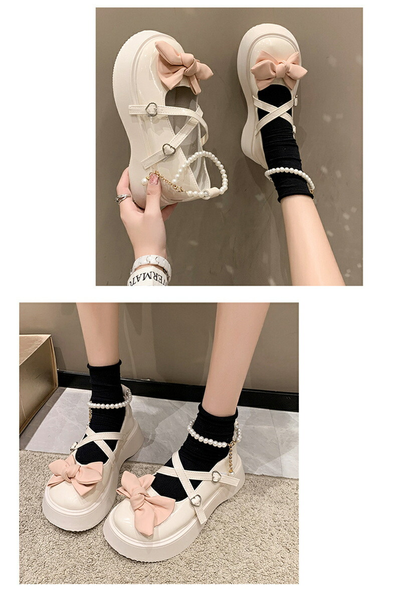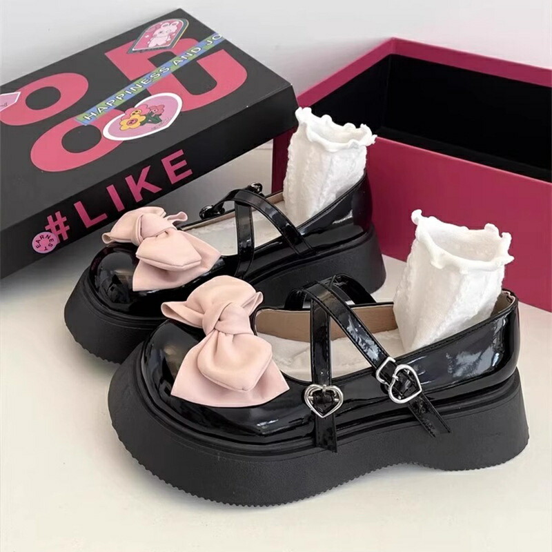 厚底ヒール ローファー ロリータシュー 靴 豊富な品揃え 35(22.5cm) 36(23cm) 37(23.5cm) 38(24cm) 39(24.5cm) 40(25cm) ブラック+ピンク アイボリー+ピンク ブラック+アイボリー アイボリー
