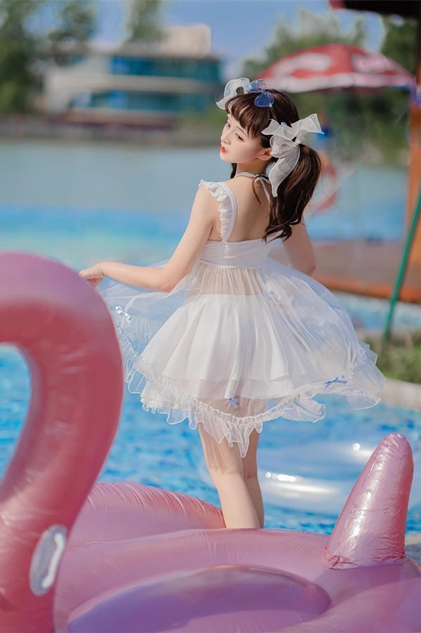 ロリータ 水着 レディース 2タイプ タンキニ 2点セット ワンピース水着 服みたいな 人魚姫風 マーメイド風 リボン パッド付き 学生風 ホルターネック 夏 着痩せ 無地 コスプレ 衣装 セクシー