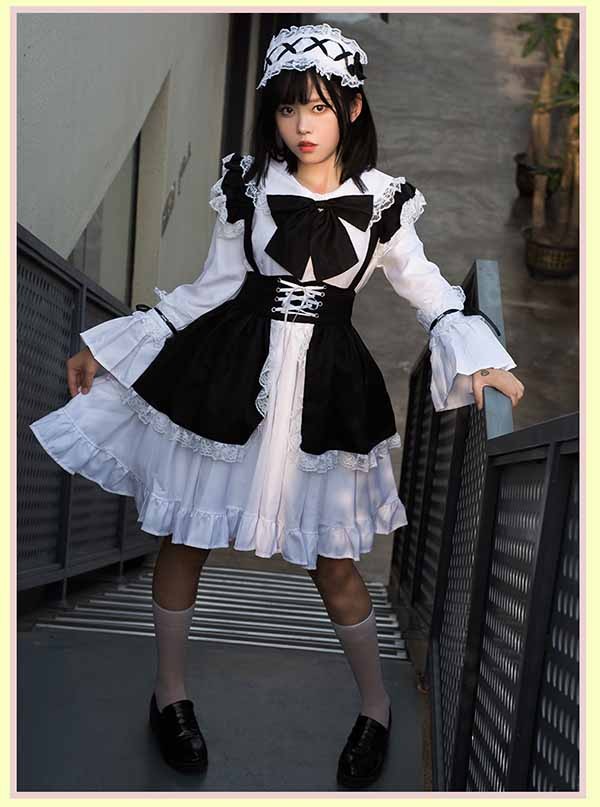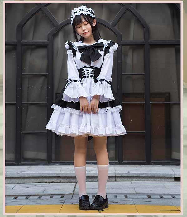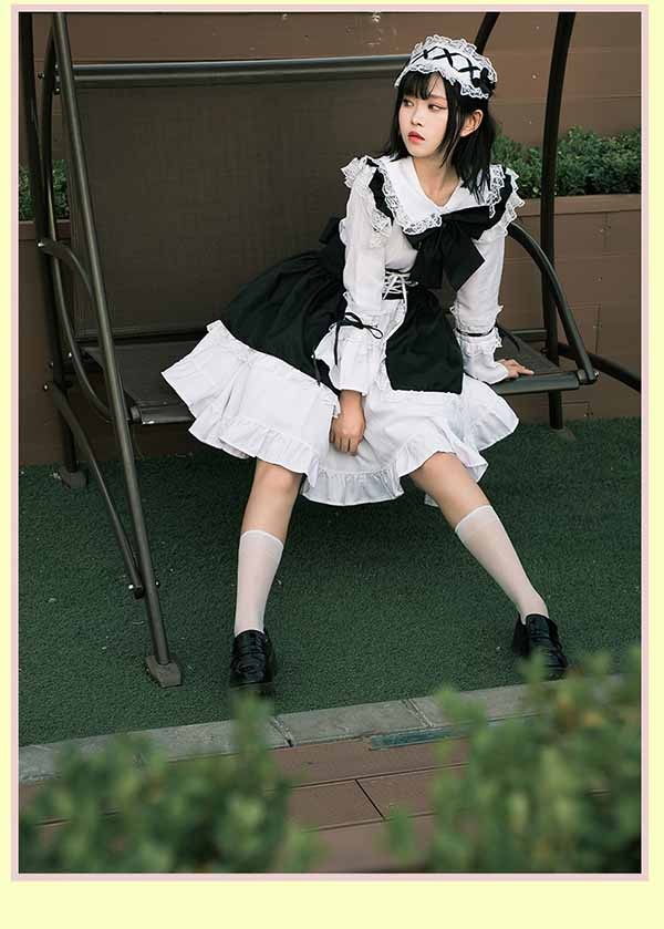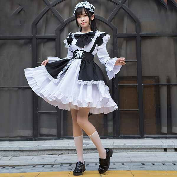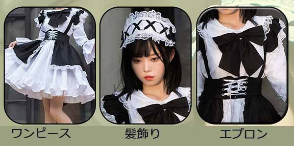ロリータ ワンピース リボン Aライン 膝上丈 Lolita ゆめかわ フリル 可愛い 萌え萌え 友達 姉妹 プレゼント レディース コスチューム 仮装 ハロウィン 文化祭 お姫様 ロリータフ 学園祭