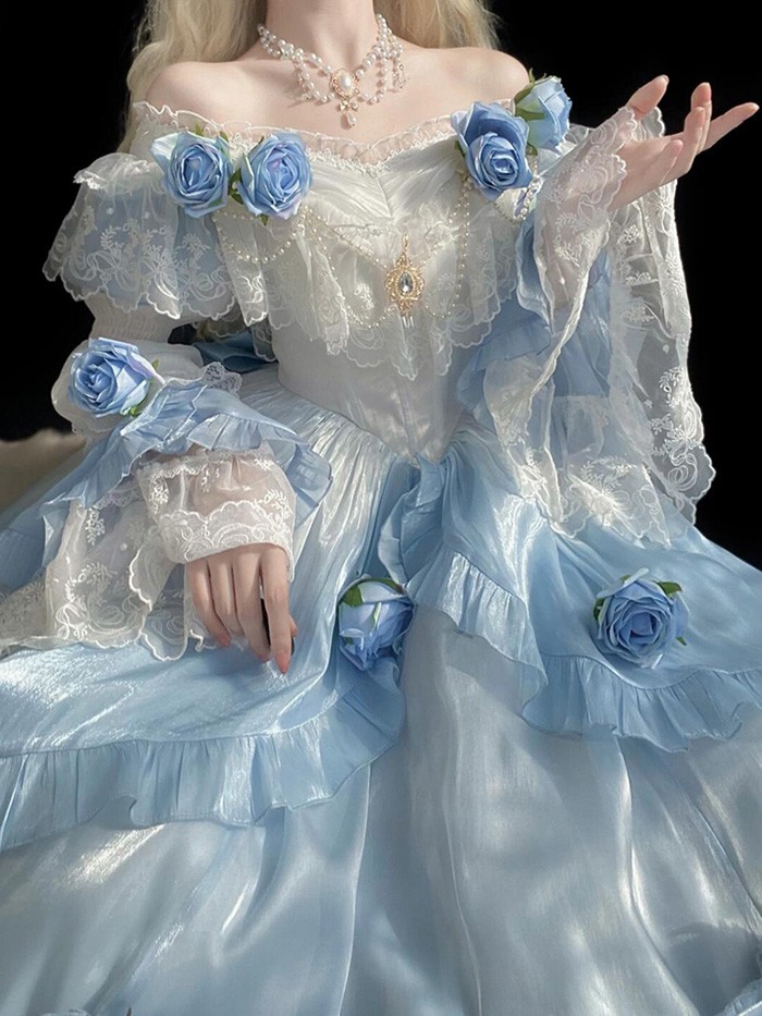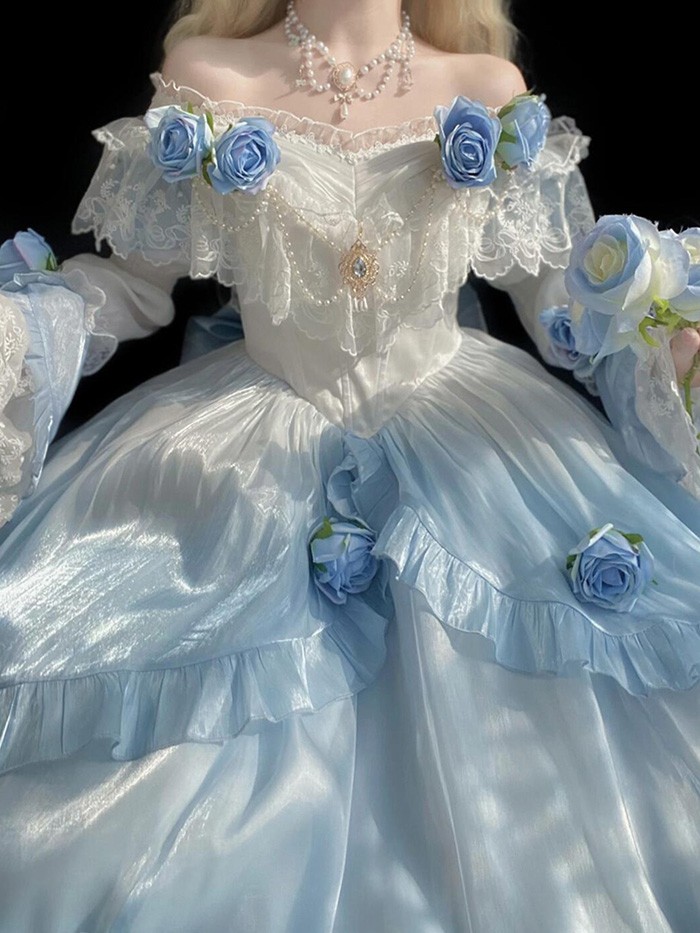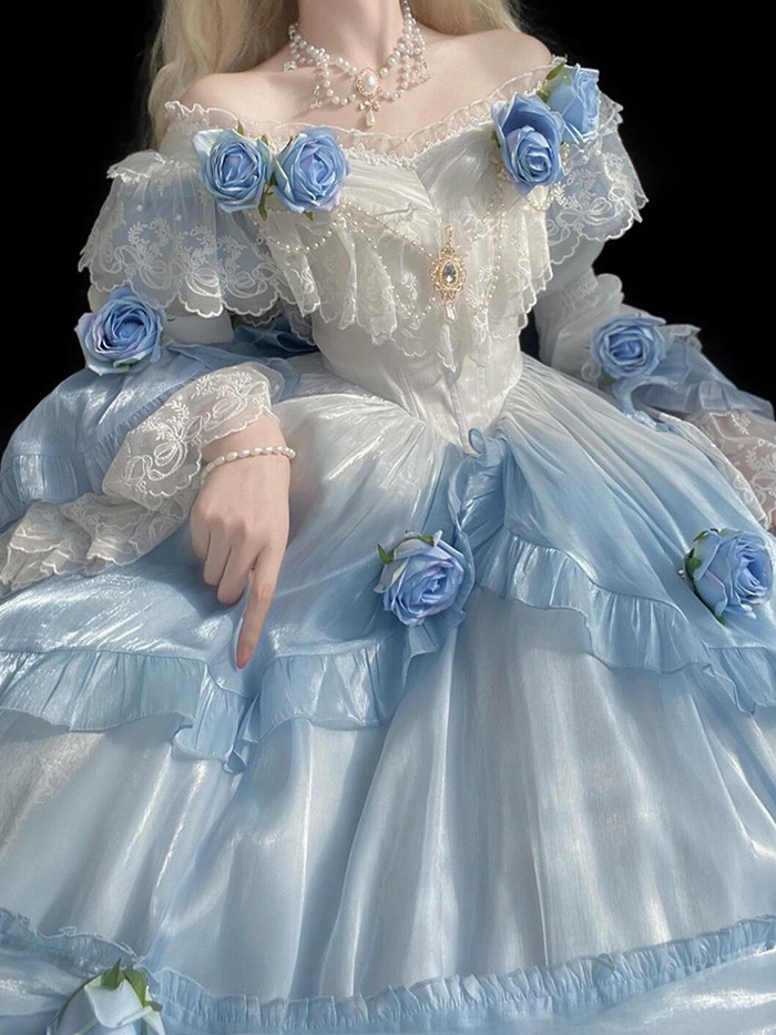 ワンピース ロリータ Lolita ハロウィン ストラップレス パフスカート S M L おしゃれ コスプレ パーティー プレゼント レディース コスチューム プリンセス ロマンティック ブル ドレス
