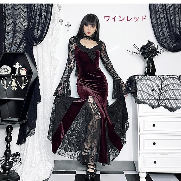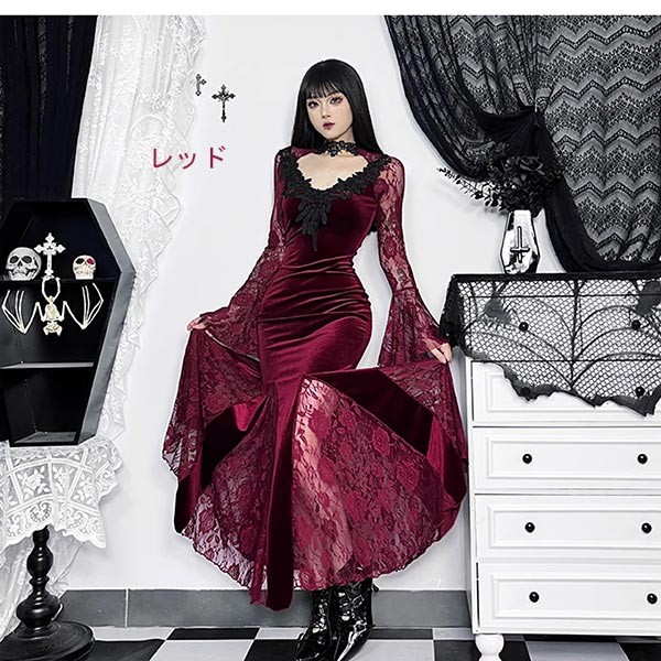 ワンピース 仮装舞踏会 女性用 ゴシッ ワンピース 超目玉商品 ワインレッド ブラック レッド S M L XL