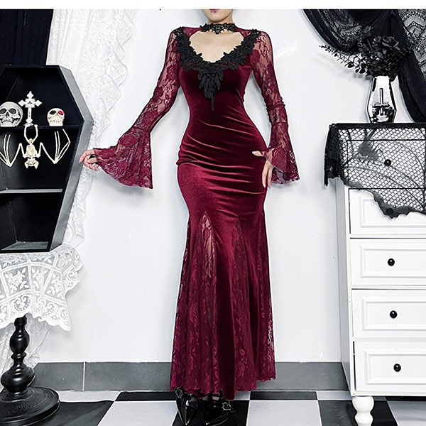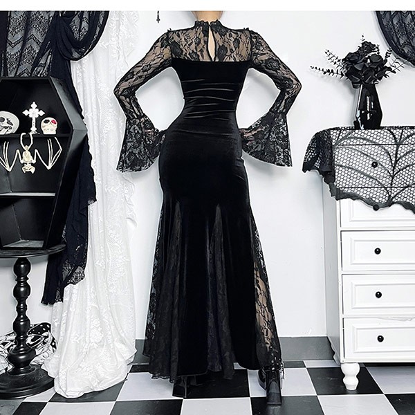 ワンピース 仮装舞踏会 女性用 ゴシック暗黒 パンク風 タキシード ベルベット コスチューム セクシー ドレス ハロウィン パーティー演出服 ステージ衣装 S L XL be001m5m5m6 M