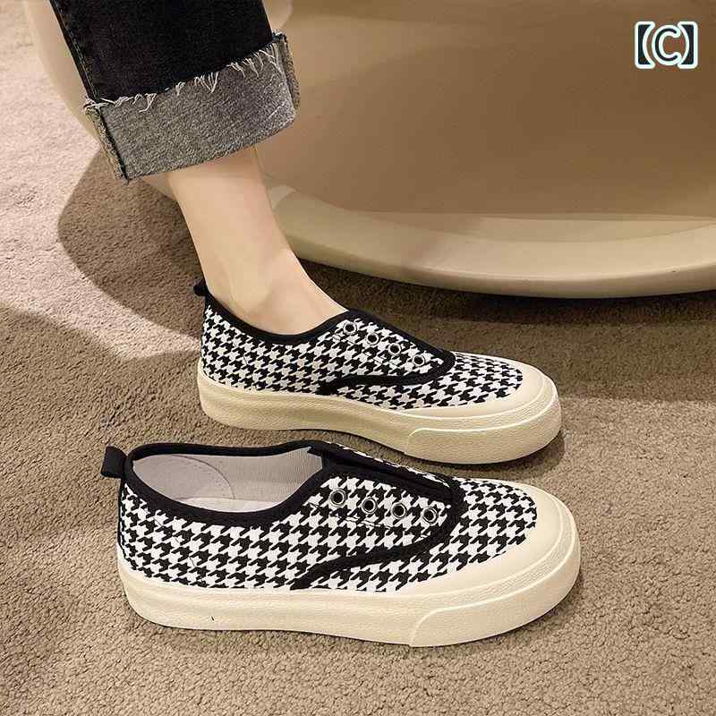 スリッポン スニーカー 帆布 キャンバ レディース靴 スリッポン 新登場! A:ブラック B:グリーン C:千鳥格子 D:ヒョウ柄 22.5 23 23.5 24 24.5 25