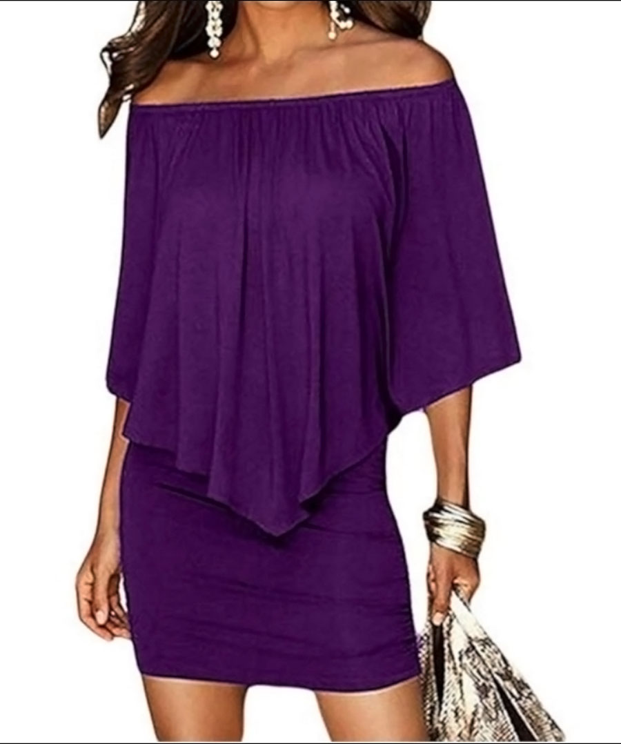 オフショルダー ワンピース 半袖 レデ ワンピース 続々登場 ブラック 黒 パープル 紫 カーキ 緑 M L XL XXL
