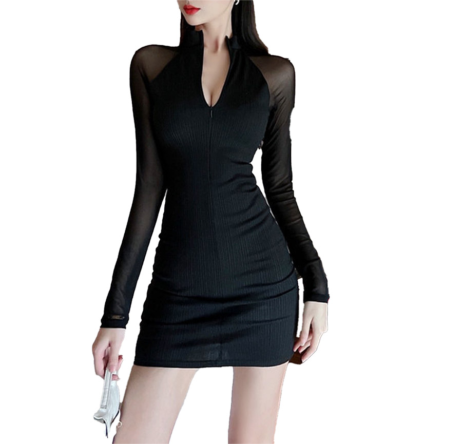ジップアップ ボディコン タイト セクシー 長袖 ミニワンピース
