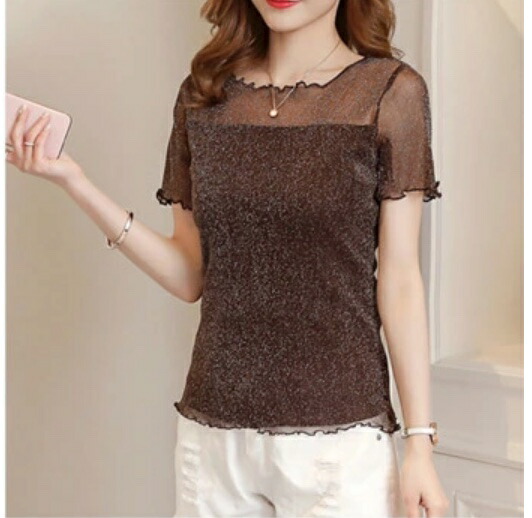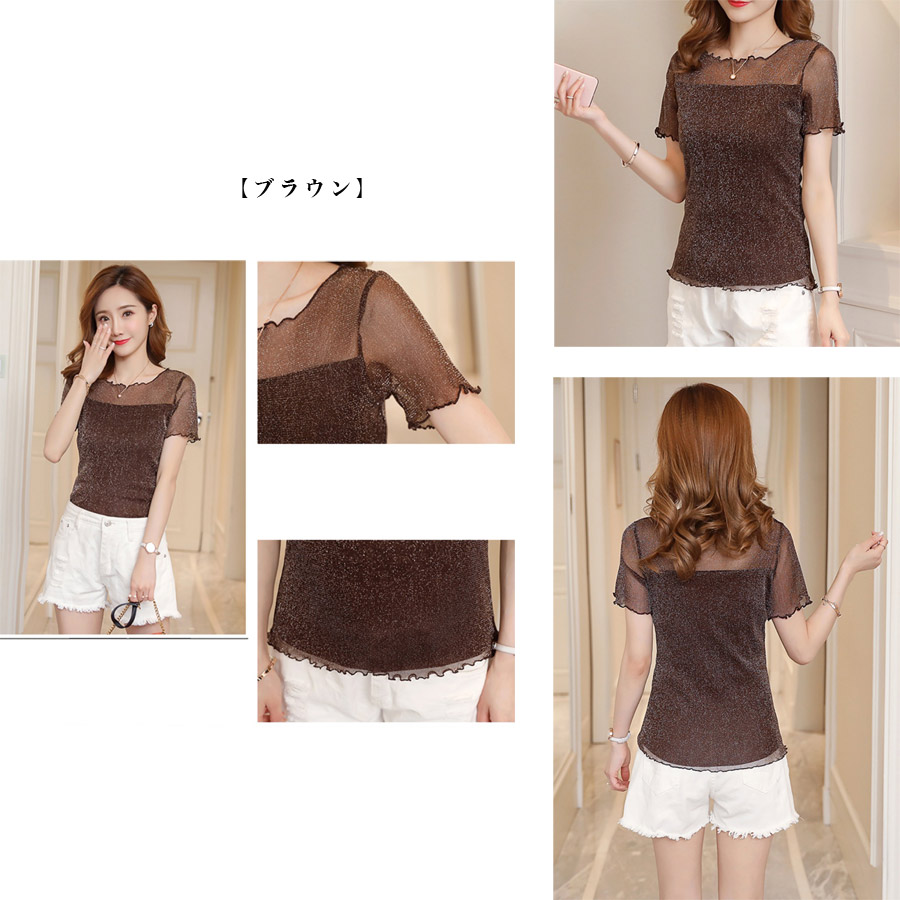 レディース トップス 半袖 レーストッ トップス シャツ ブラウス 新登場! ブラック ブラウン ネイビー M L XL XXL
