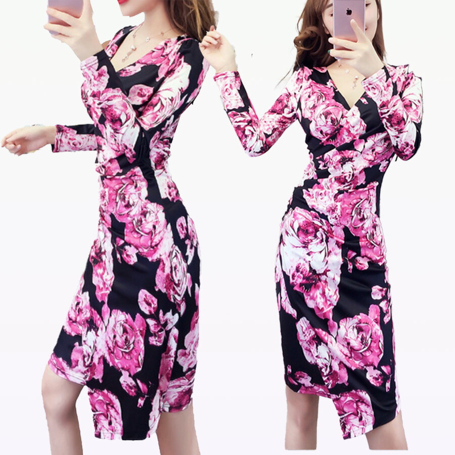 キャバ 魅惑 ドレス レディース 黒 パブ 長袖 レース タイト スカート エレガント プリーツ 韓国 セクシー