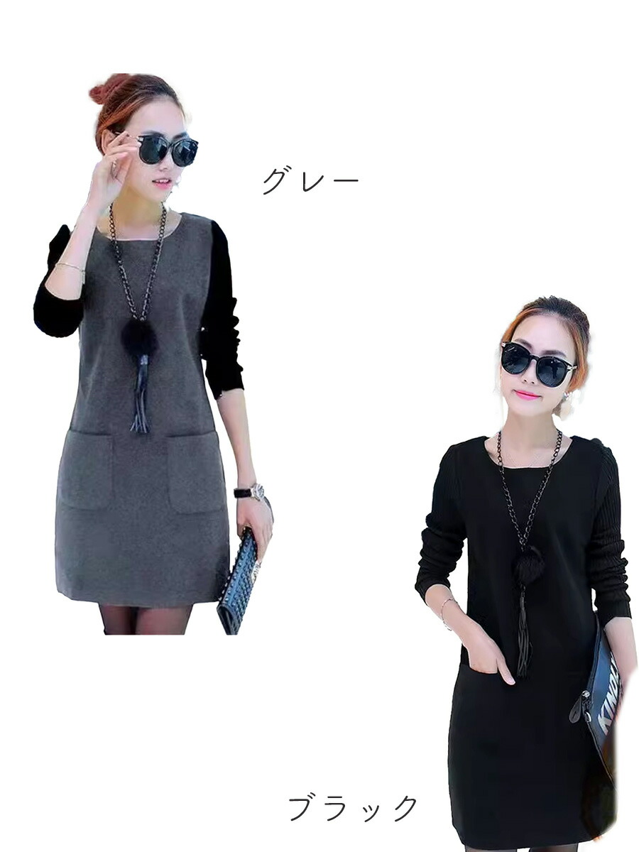 あったかおしゃれ裏起毛ミニ丈ワンピース レディースファッション 超目玉商品 グレー 灰色 ブラック M L XL