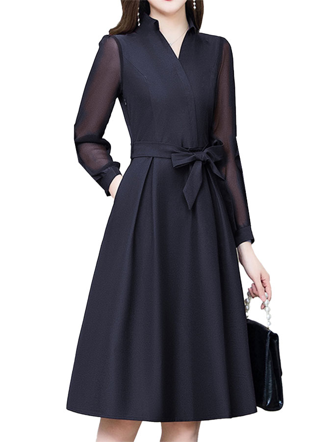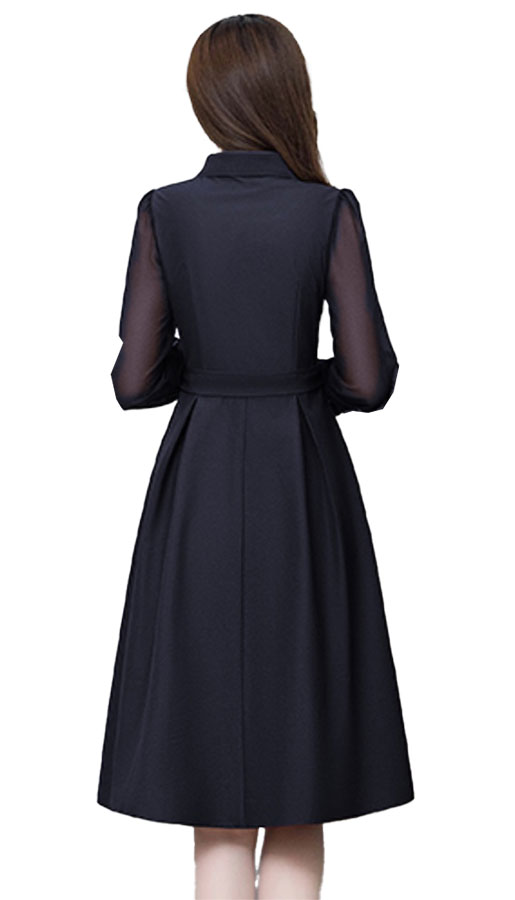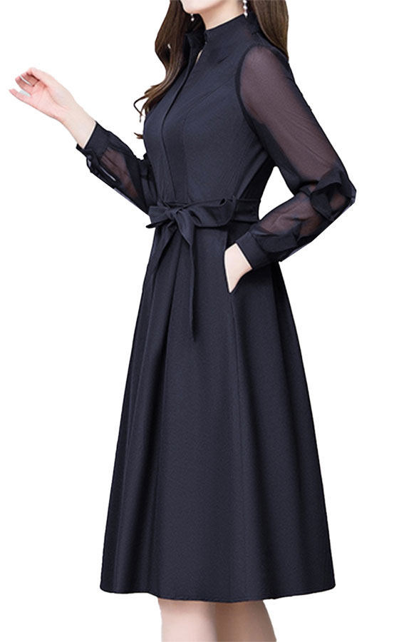 膝丈 シースルー袖 シャツワンピース レディースファッション 続々登場 M L XL XXL