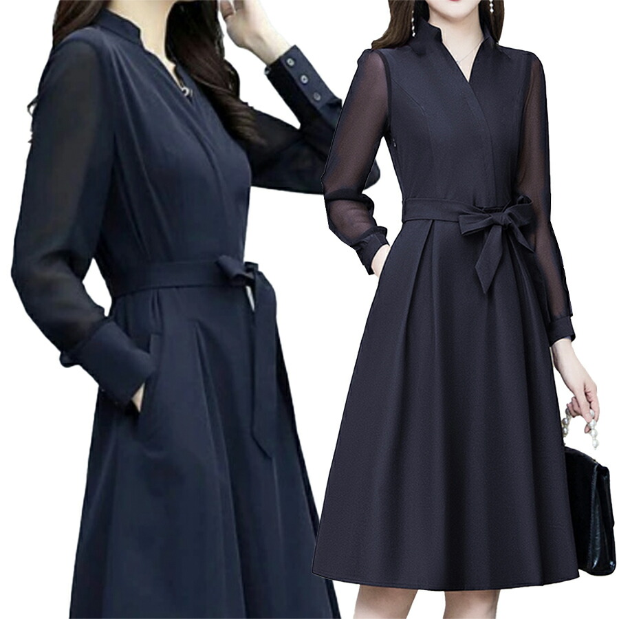 キャバ 魅惑 ドレス レディース 黒 パブ 長袖 レース タイト スカート エレガント プリーツ 韓国 セクシー