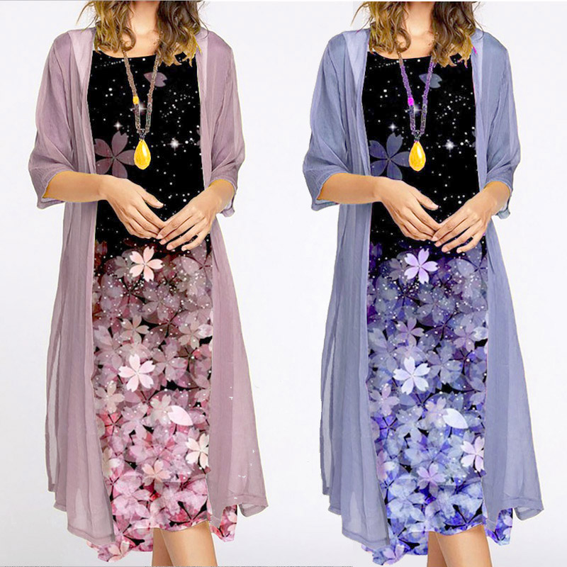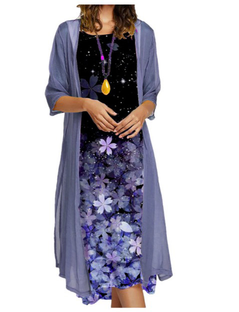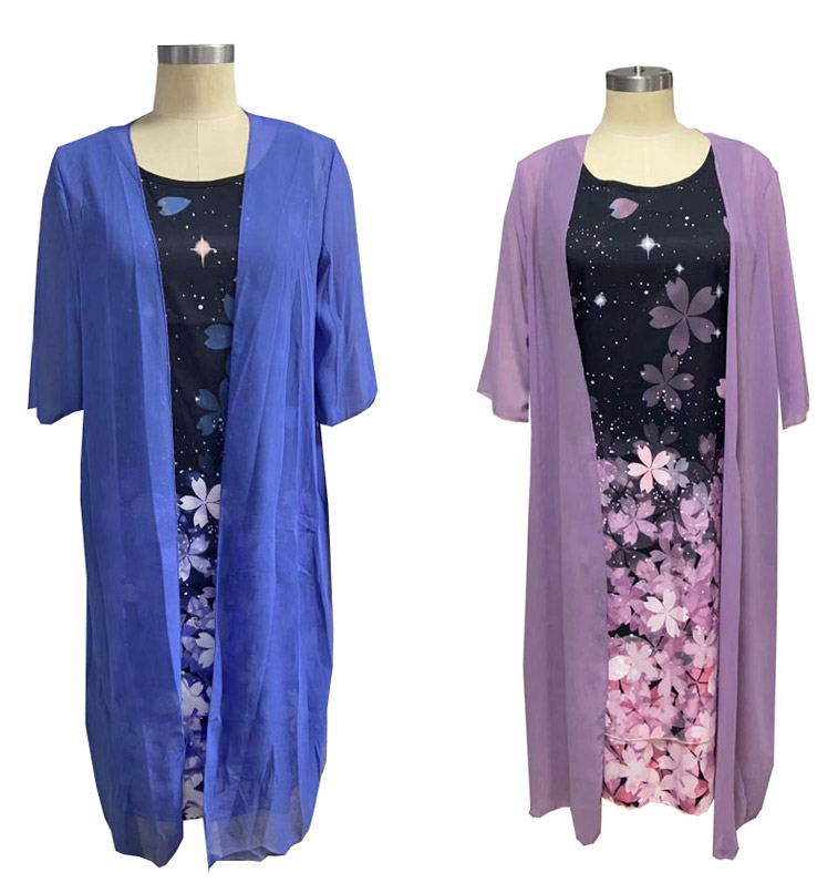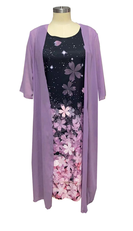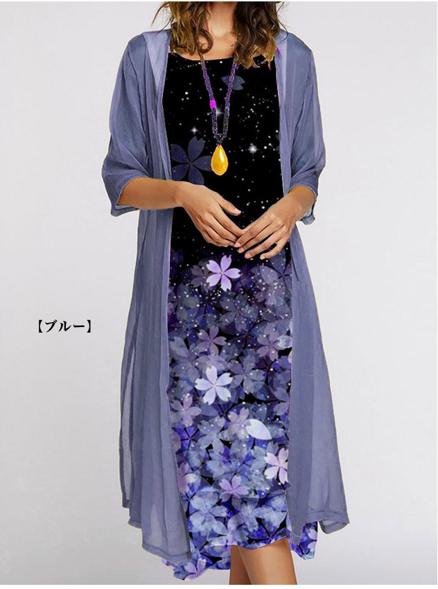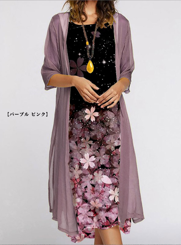 2点セット 大人 上品 きれいめ ロン ワンピース 超目玉商品 パープルピンク 紫系 ブルー 青系 M L XL XXL