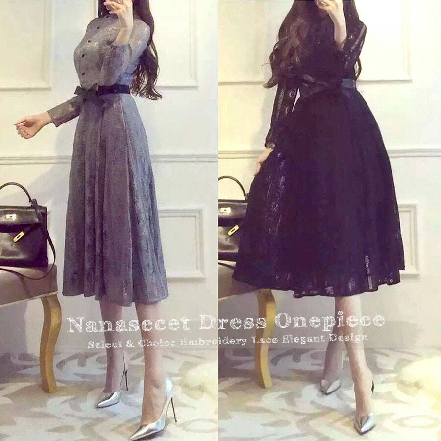 キャバ 魅惑 ドレス レディース 黒 パブ 長袖 レース タイト スカート エレガント プリーツ 韓国 セクシー