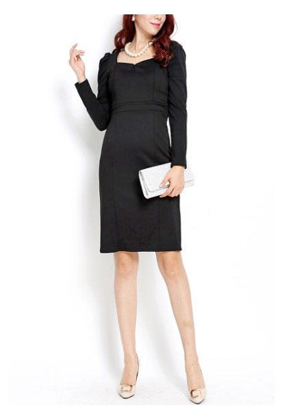 キャバ 魅惑 ドレス レディース 黒 パブ 長袖 レース タイト スカート エレガント プリーツ 韓国 セクシー