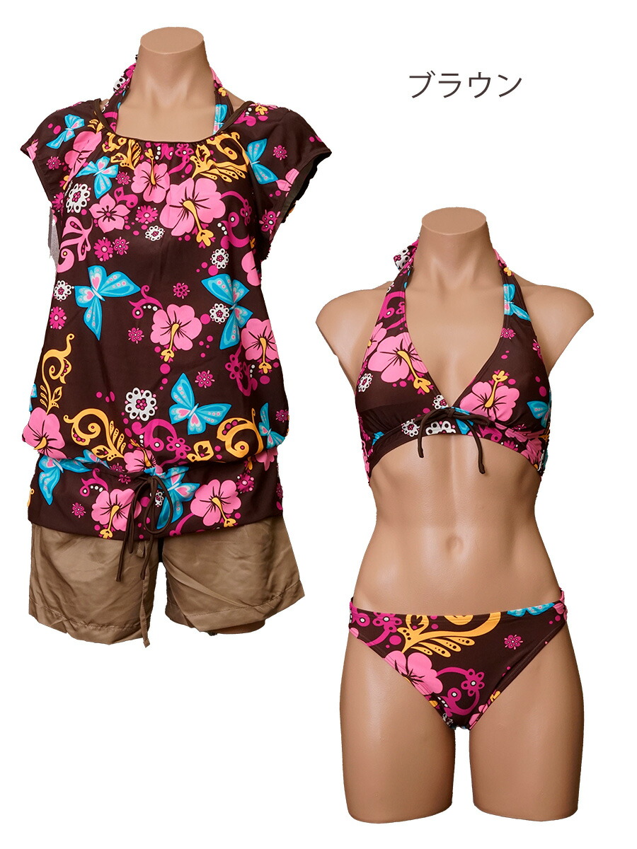 ピンキー&ダイアン 水着 体型カバー タンキニ レディース ビキニ セット 体型カバー水着 30代 40代 50代 60代 ママ ミセス タンキニ水着 ママ水着 4点セット パンツ ショー セパレート