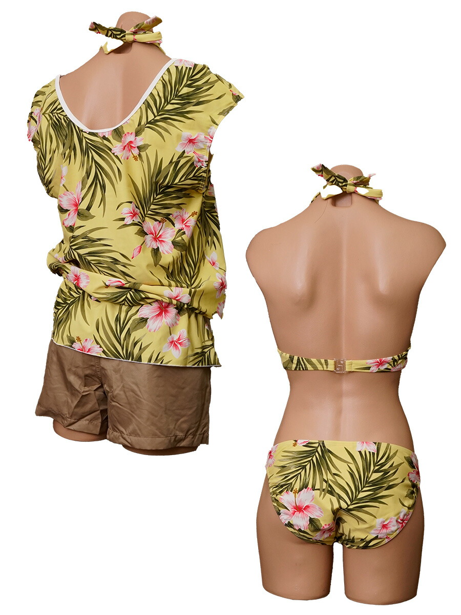 限定1着のみ水着 体型カバー タンキニ 水着 新作 9号M 13号L ブラウン イエロー