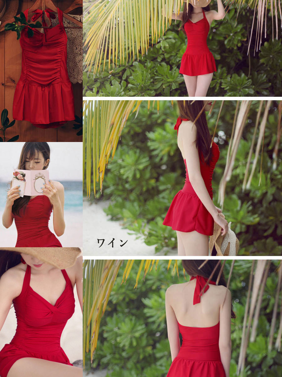ワンピース水着 レディース 水着 体型 水着 新作 M L XL XXL ブラック ワイン