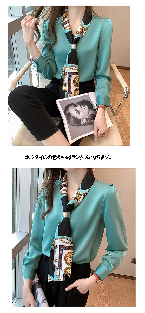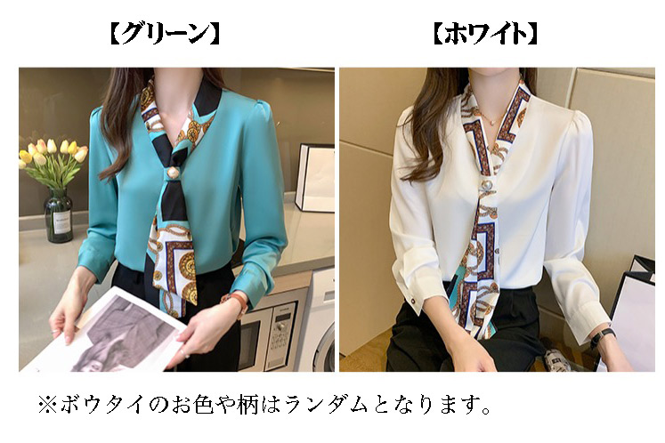 ボウタイブラウス レディース フォーマ トップス シャツ ブラウス 超目玉商品 白 ホワイト 緑 グリーン M L XL XXL