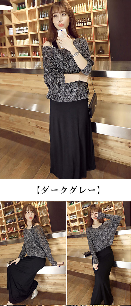ロングワンピース 秋冬 春 大人 マキ レディースファッション 新登場! ライトグレー ダークグレー ワインレッド M L