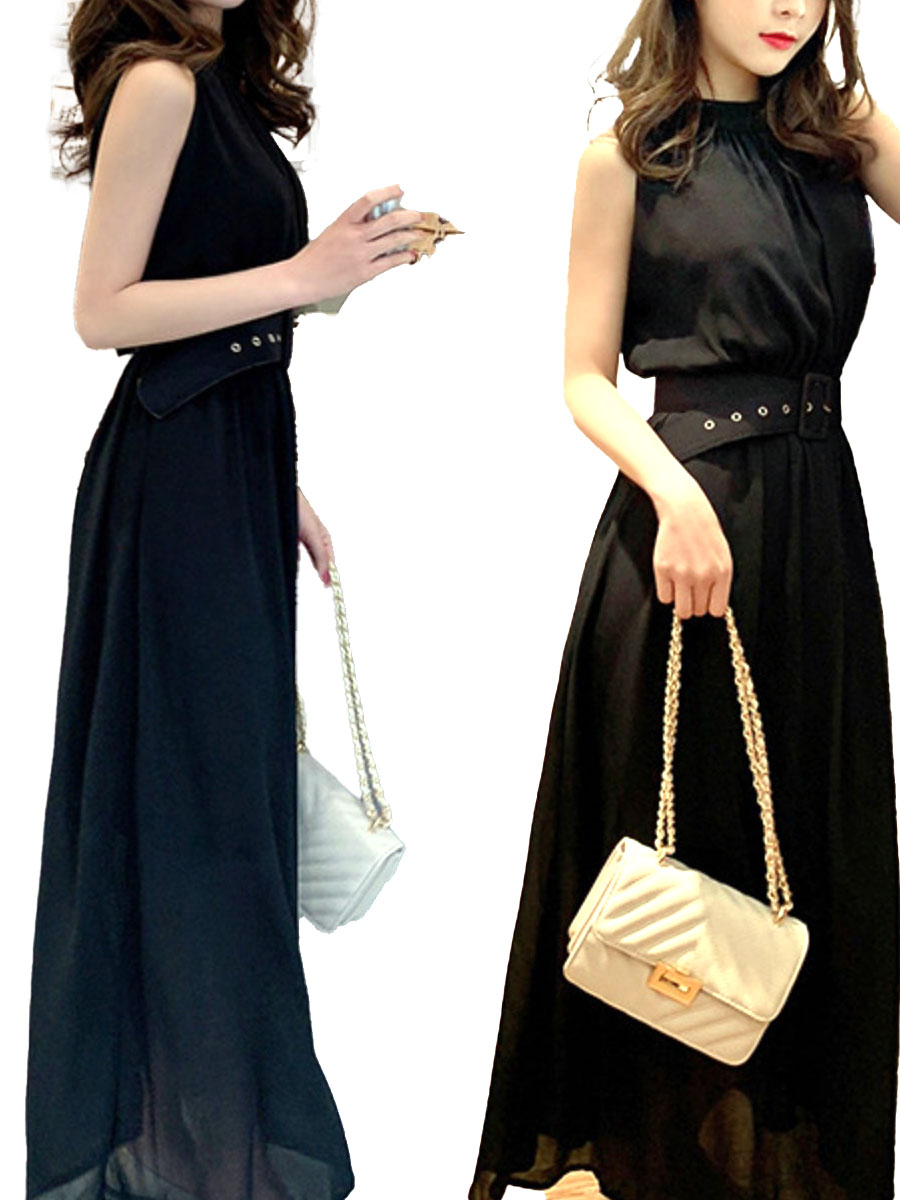ロングワンピース レディース きれいめ レディースファッション 続々登場 ブラック グレー M L XL