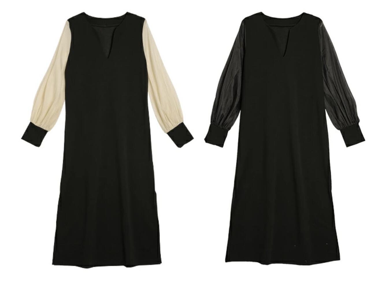 ドッキング 透け シースルー 体型カバー 着やせ ゆったり 着痩せ 二の腕 長袖 袖 膝丈