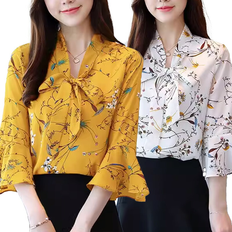 レディース ブラウス カットソー 7分 レディースファッション 超目玉商品 イエロー ホワイト M L XL XXL