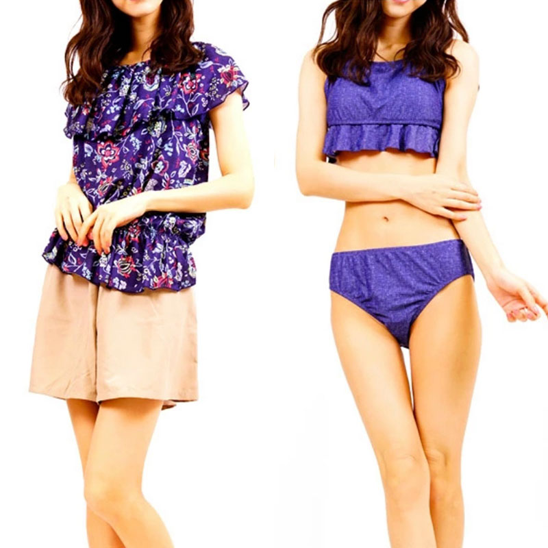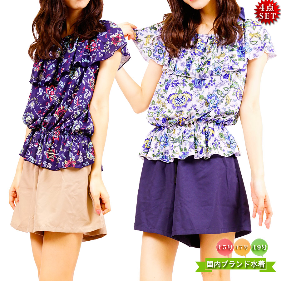 水着 体型カバー レディース 体型カバ レディースファッション 新作 ホワイト(紺パンツ) ネイビー(茶パンツ) 15号 17号
