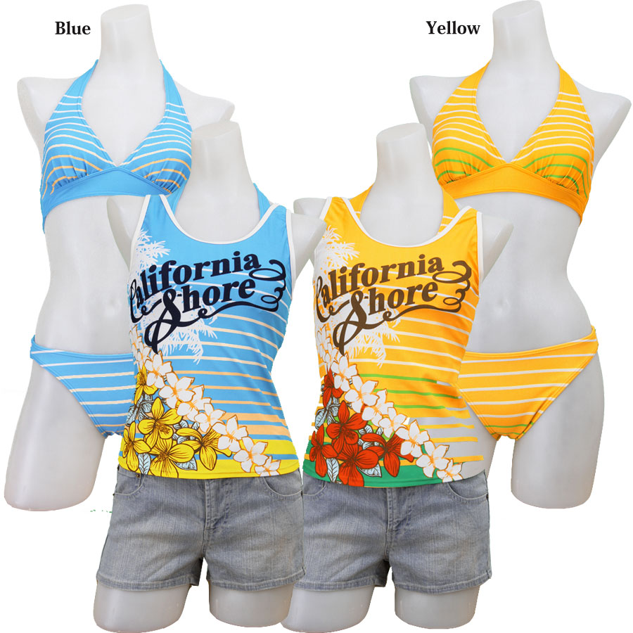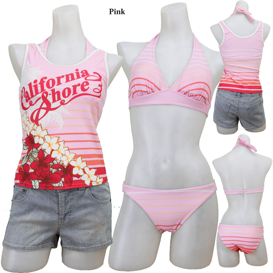 水着 体型カバー タンキニ レディース 水着 新作 ピンク ブルー イエロー 7号S 7S 9号M 9M 11号L 11L 13号L 13L