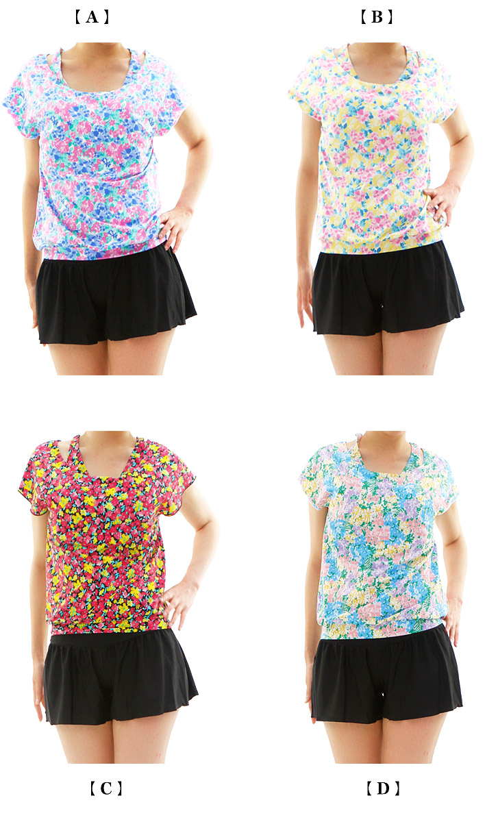 水着 レディース タンキニ 袖付き タ 水着 新作 【A】 【B】 【C】 【D】