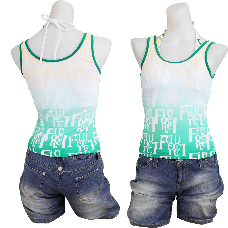 タンクトップレディースTシャツノースリーブUネックロゴプリント