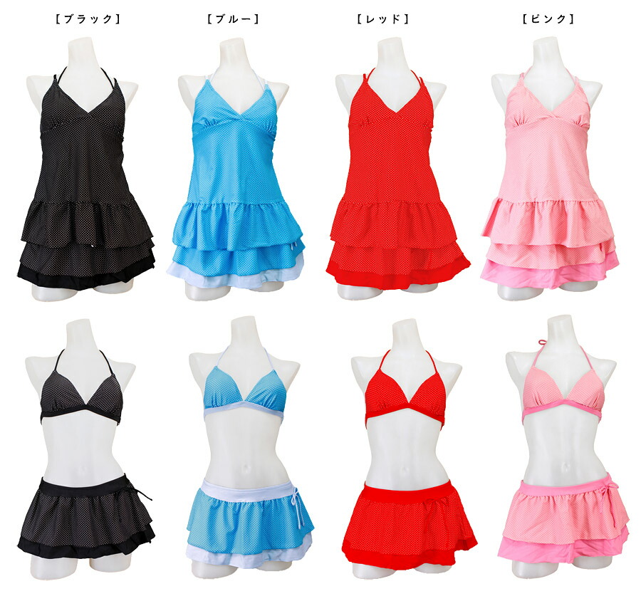 水着 体型カバー レディース タンキニ 水着 続々入荷中 7号S 9号M 11号L 13号L ブラック(黒) ブルー(青) レッド(赤) ピンク
