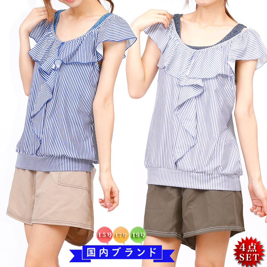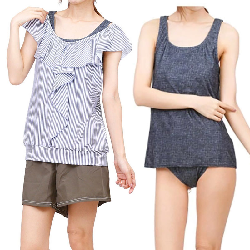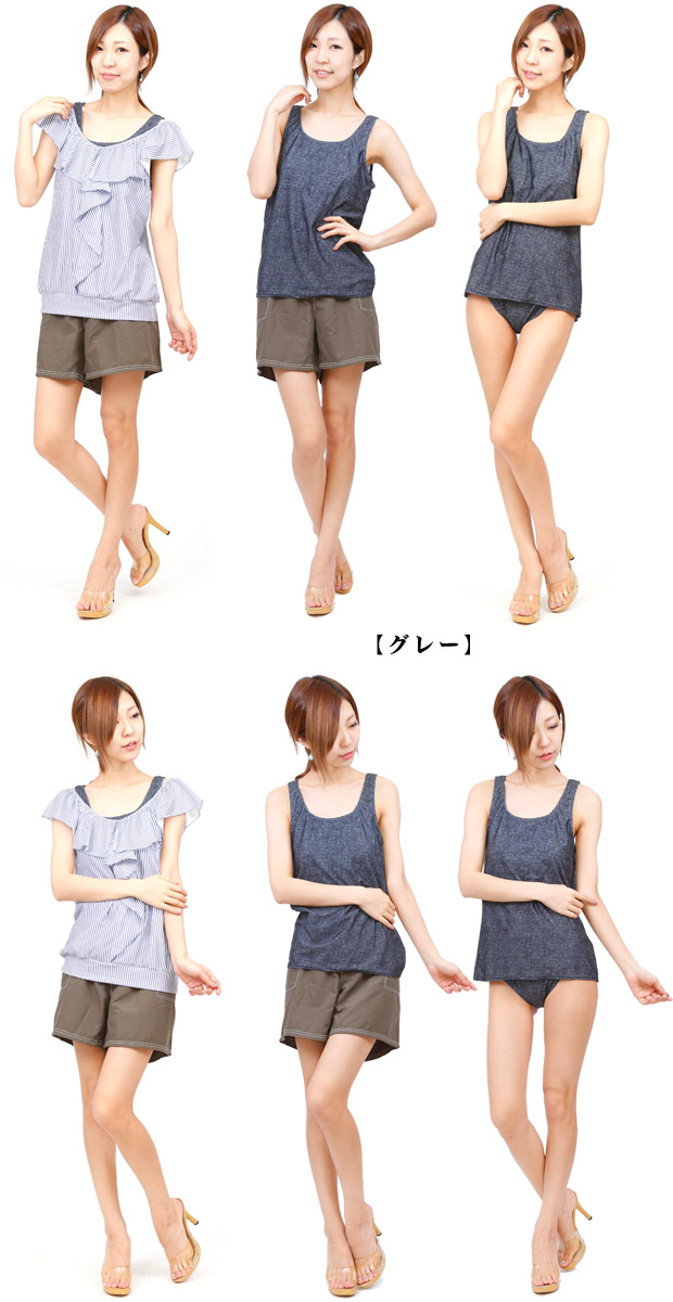 水着 体型カバー レディース タンキニ 水着 早い者勝ち グレー(カーキパンツ) ネイビー(茶パンツ) 15号 17号 19号