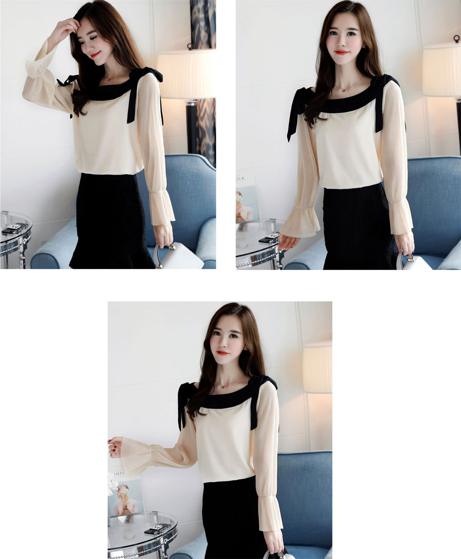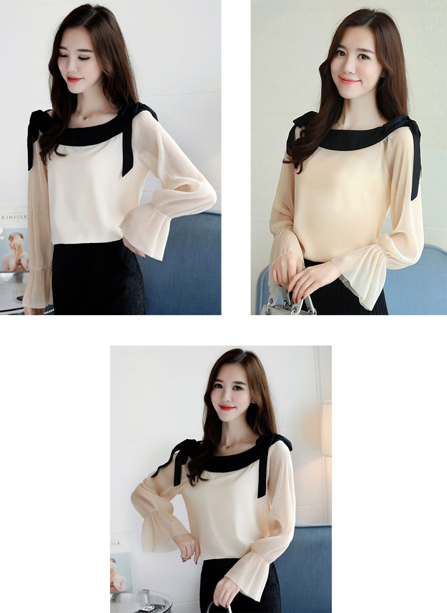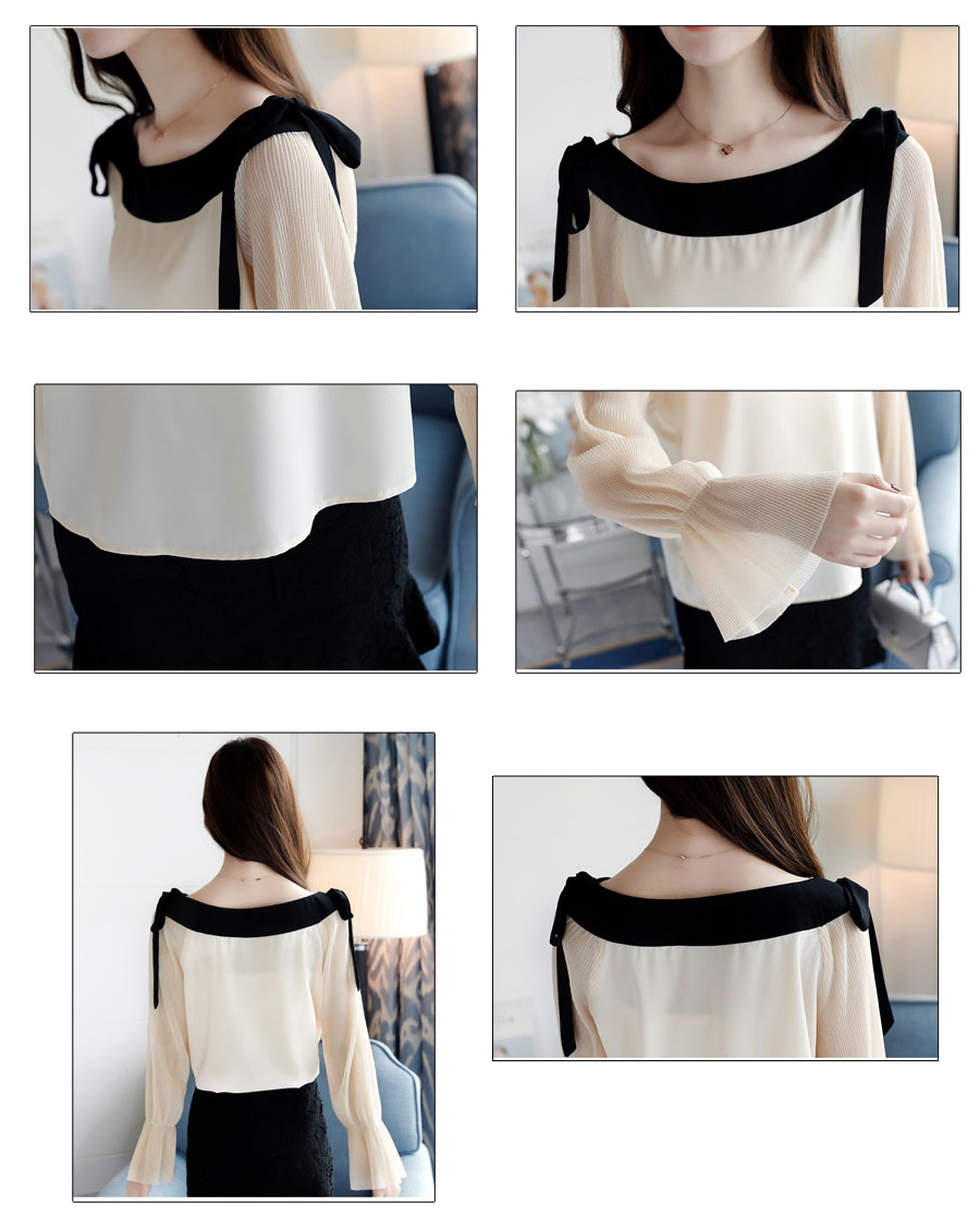 トップス シフォン ブラウス 長袖 レ レディースファッション 新登場! M L XL
