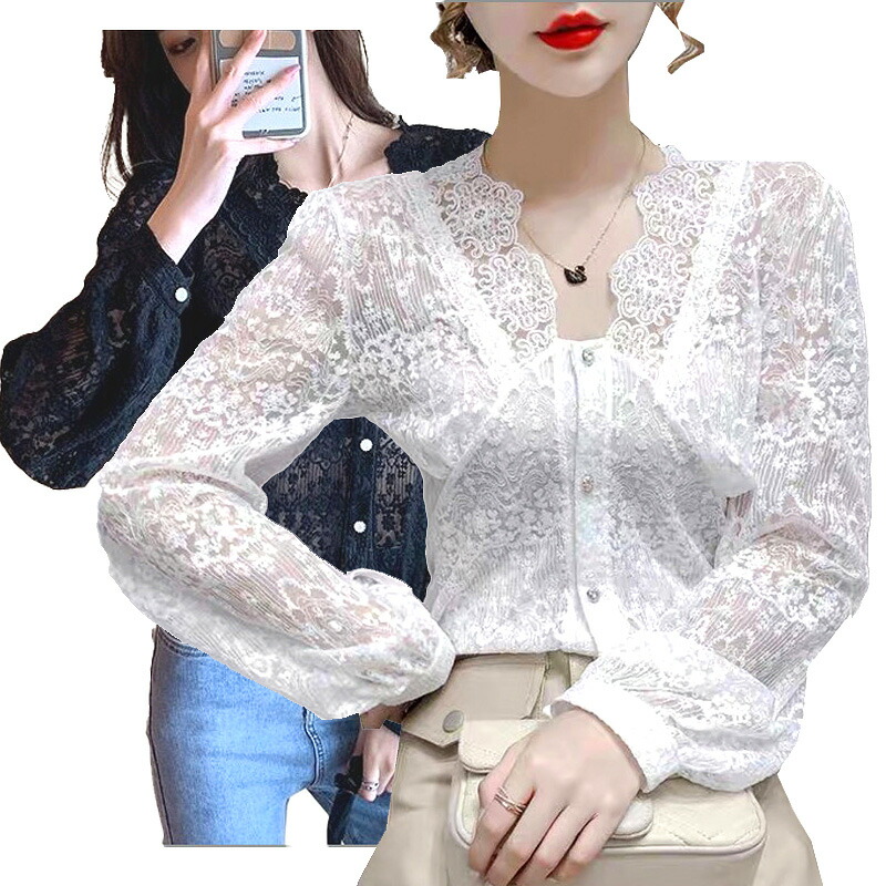 レディース トップス 長袖 総レース レディースファッション 超目玉商品 白 ホワイト 黒 ブラック M L XL