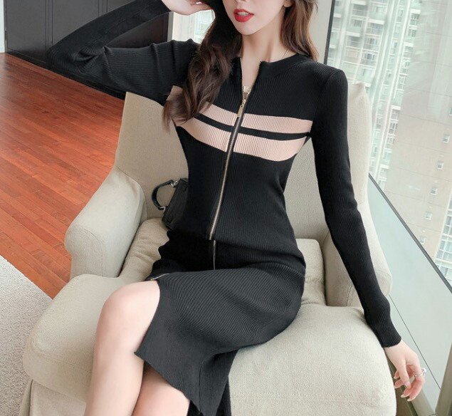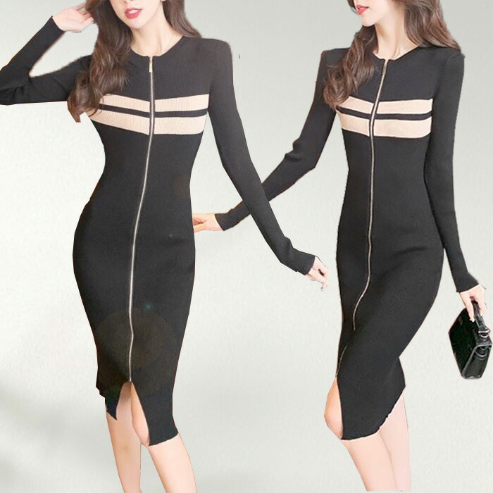 リブニット ニット ワンピース タイト レディースファッション 超目玉商品 M L XL