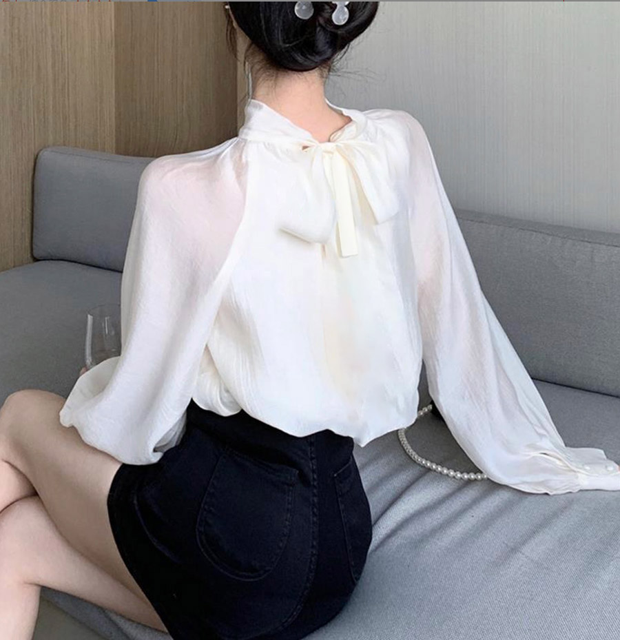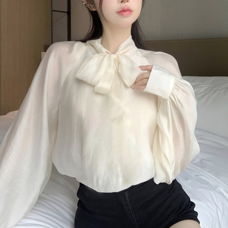 長袖 ボウタイ ブラウス - きれいめ シフォントップス