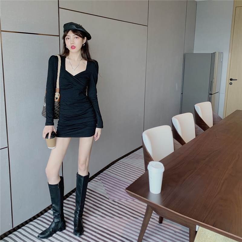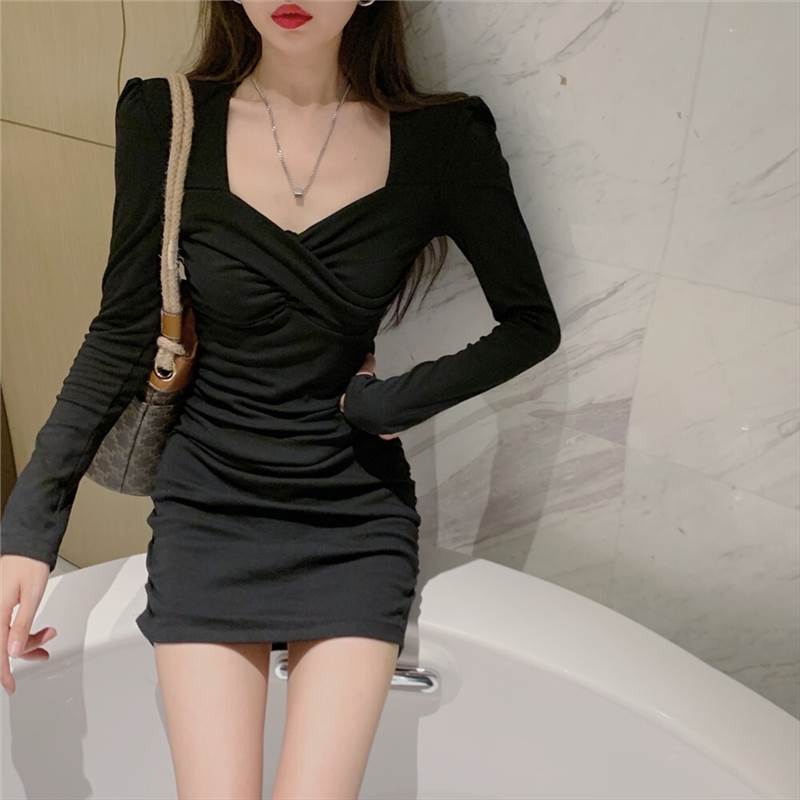 ワンピースドレス 黒 無地 ミニ セクシー キ