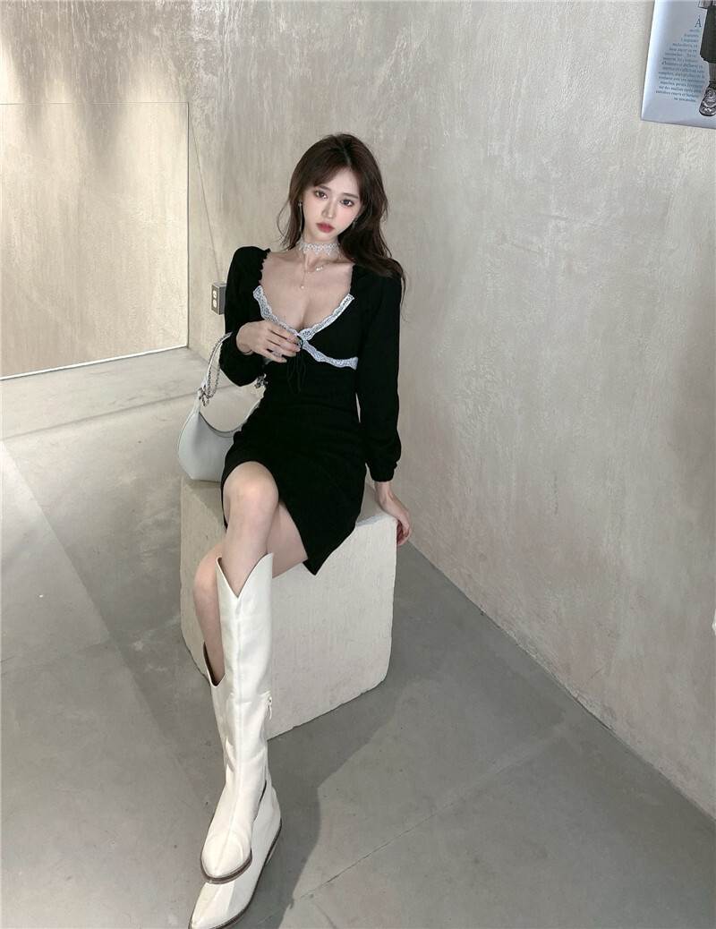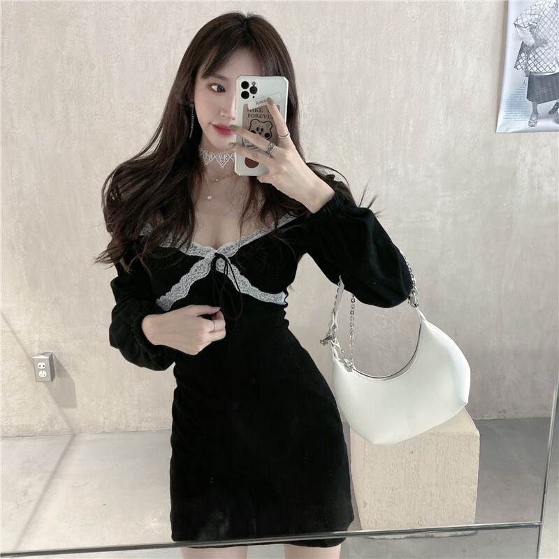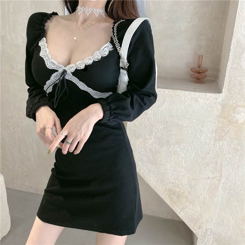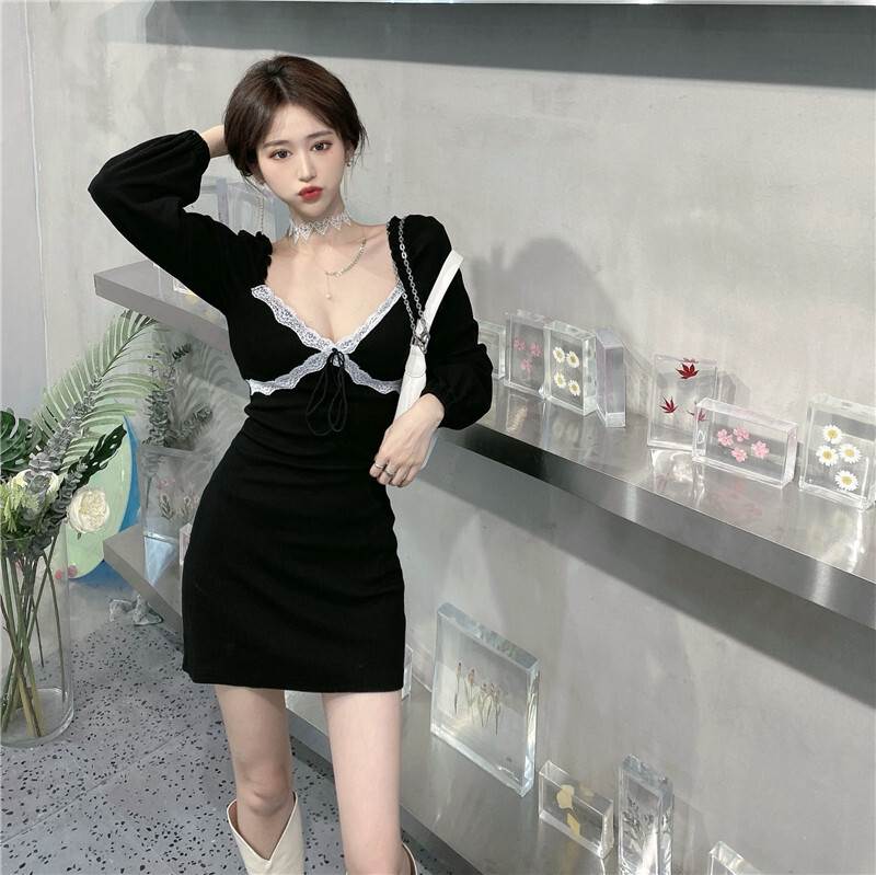 ワンピースドレス 黒 無地 ミニ セクシー キ