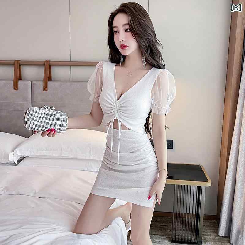 レディース シアータイト ドレス ミニ レディースファッション 続々登場 A:ブラック B:ホワイト S M L XL 2XL 3XL
