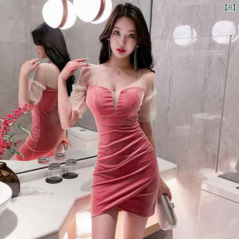 レディース ベルベッドミニドレス シア ドレス 続々登場 A:ブラック B:ピンク S M L XL 2XL 3XL
