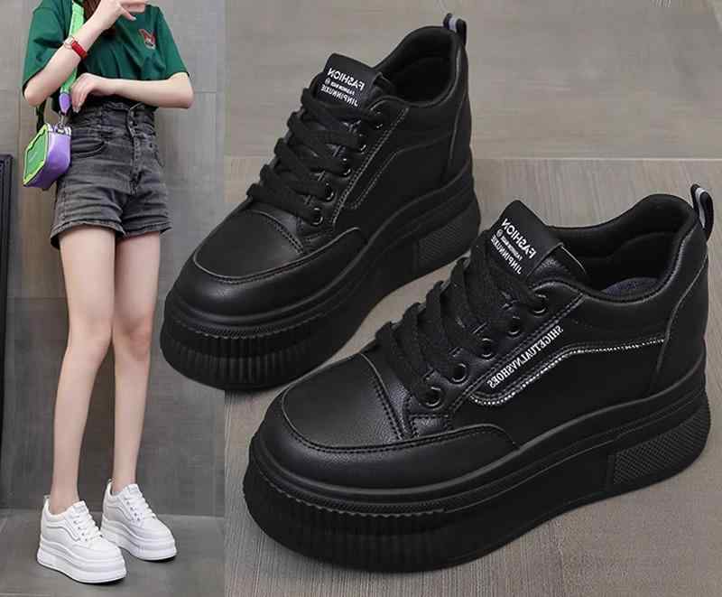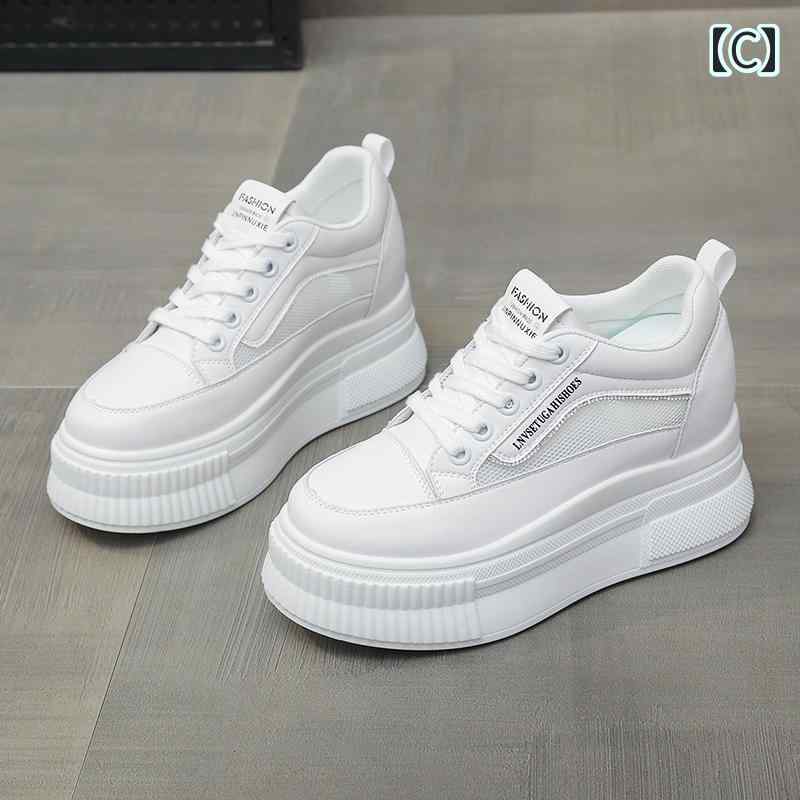 8cm 超厚底 スニーカー 黒 白 か レディース靴 スニーカー 特集 A:ブラックレザー B:ホワイトレザー C:ホワイトメッシュ 22 22.5 23 23.5 24 24.5 25