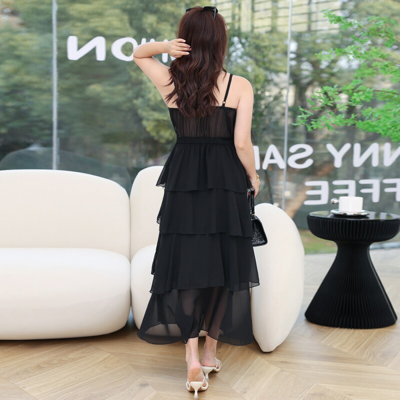 ★シフォン素材プラス可愛い4段フレアティアードデザイン、女性の可愛らさをUPしてくれます♪