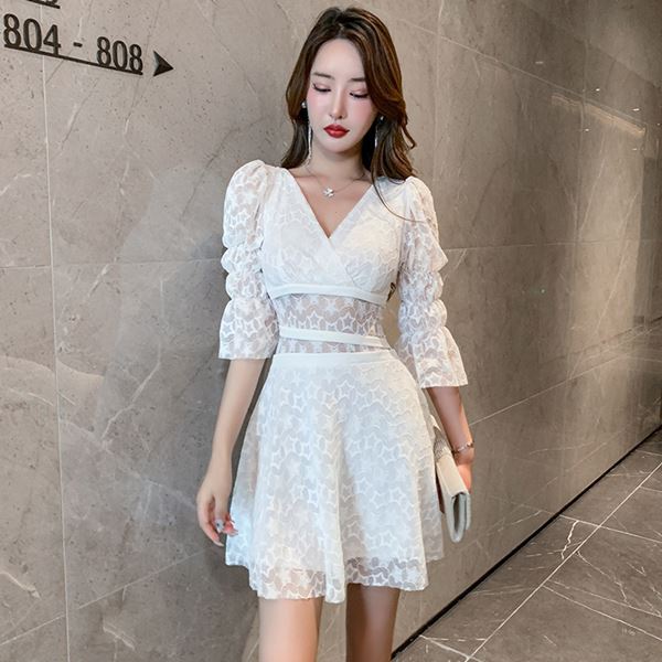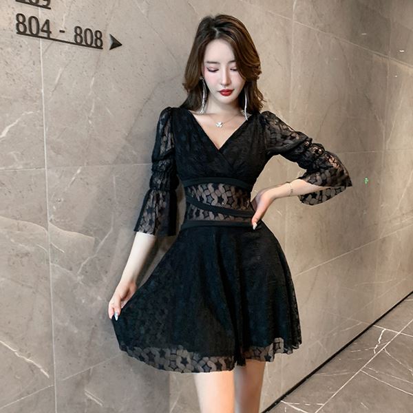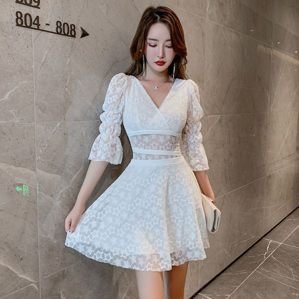 ★セクシーキュート!ウエスト透け魅せ星柄レースミニドレスです♪