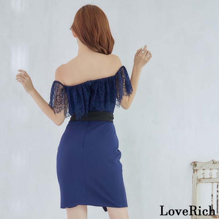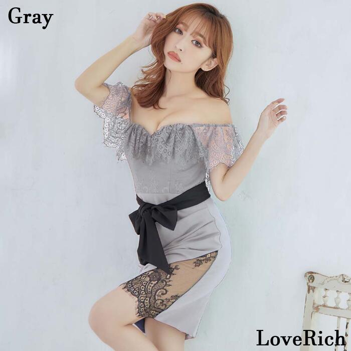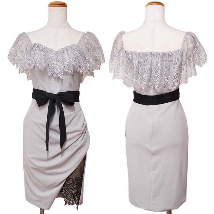 ★大人気!大胆セクシーなレース素材のワンピース!オフショルダーの袖はカワイイフリル使い、リボン付きでアクセントに、レース入りスリットのタイトミニドレスです♪