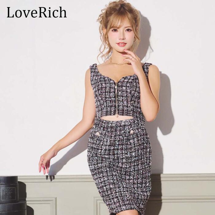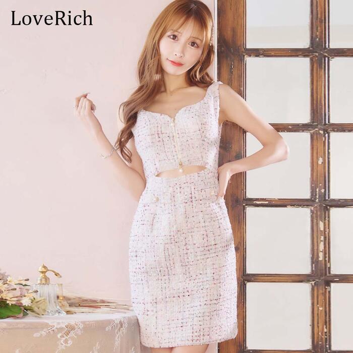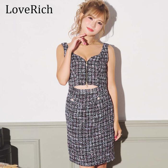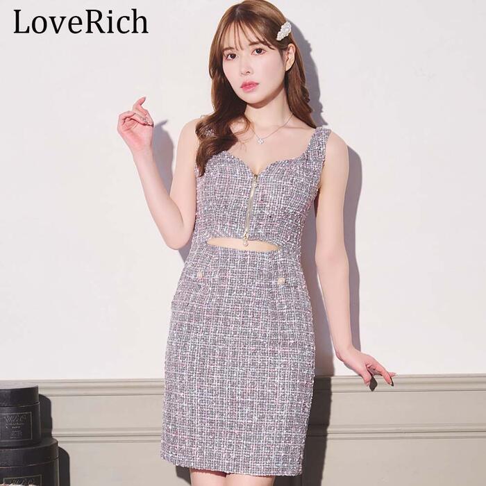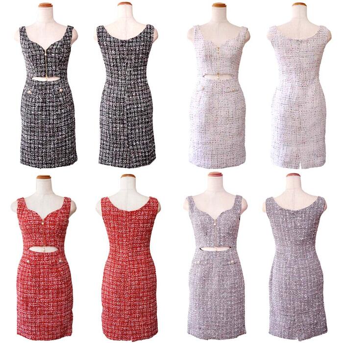 ★大人気!大胆セクシーなツイード素材のワンピース!フロントパールジップでノースリ谷間魅せセクシー度倍増タイトミニドレスです♪