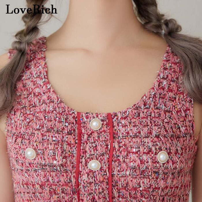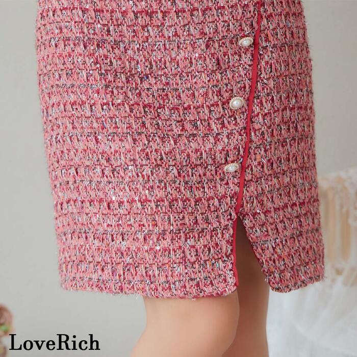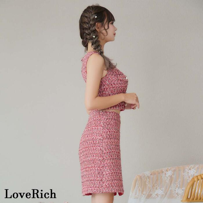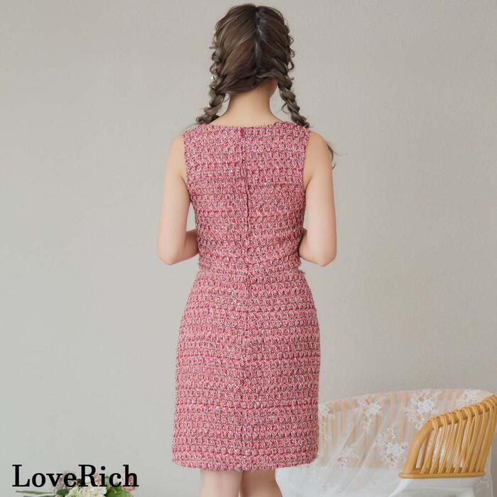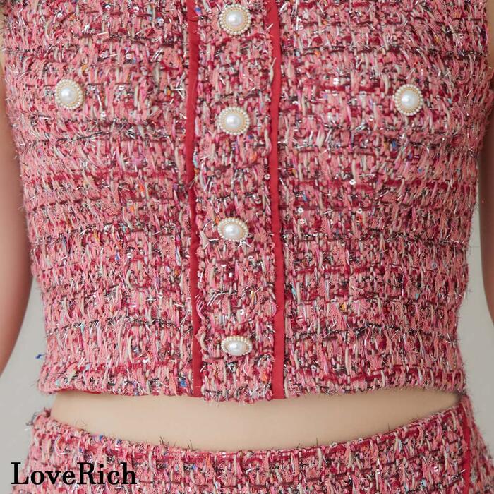 ★大人気!大胆セクシーなツイード素材のセットアップパール付きノースリーブ&ミニ丈スカートのタイトミニドレスです♪